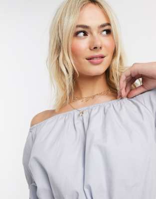 ASOS DESIGN u2013 Blå bomullstopp i off shoulder-modell - bomullstopp kort